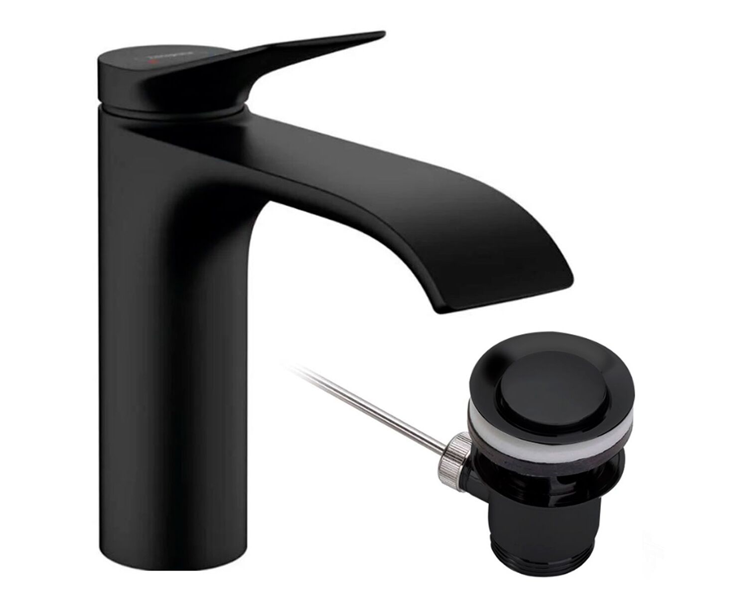 Hansgrohe Vivenis 75020670 смеситель для раковины с донным клапаном в черном цвете представляет собой однорычажный смеситель с современным дизайном. Он включает в себя сливной клапан и обладает ComfortZone 110, что обеспечивает удобное пространство для использования.