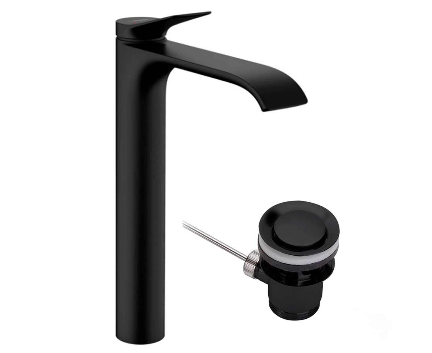Высокий однорычажный смеситель для накладной раковины Hansgrohe Vivenis 250 75040670 в черном цвете со сливным клапаном. Он обладает ComfortZone 250, что обеспечивает комфортное пространство между изливом и раковиной. Смеситель имеет выступ 191 мм и высоту излива 251 мм, что обеспечивает удобство использования. Рычажная ручка позволяет легко регулировать поток и температуру воды. Тип струи — WaterfallStream, создающая широкий и мягкий поток воды, напоминающий водопад.