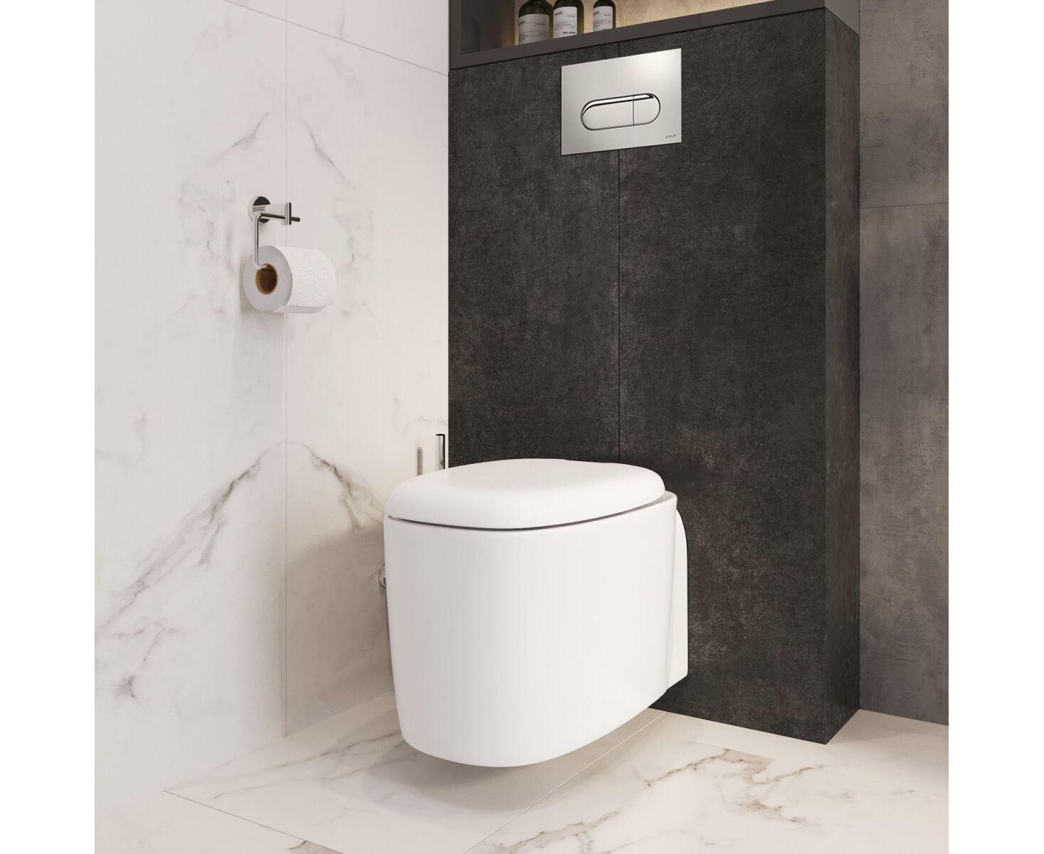 Белый дизайнерский подвесной унитаз Plural 7830B401-0075 — результат сотрудничества VitrA и американского дизайнера Терри Пекоры, вдохновленный традициями общественных бань.