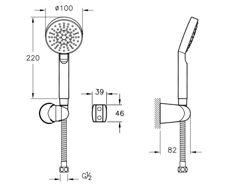 Душевой гарнитур с ручным душем , диаметр лейки 100мм, длина душевого шланга 1,750мм