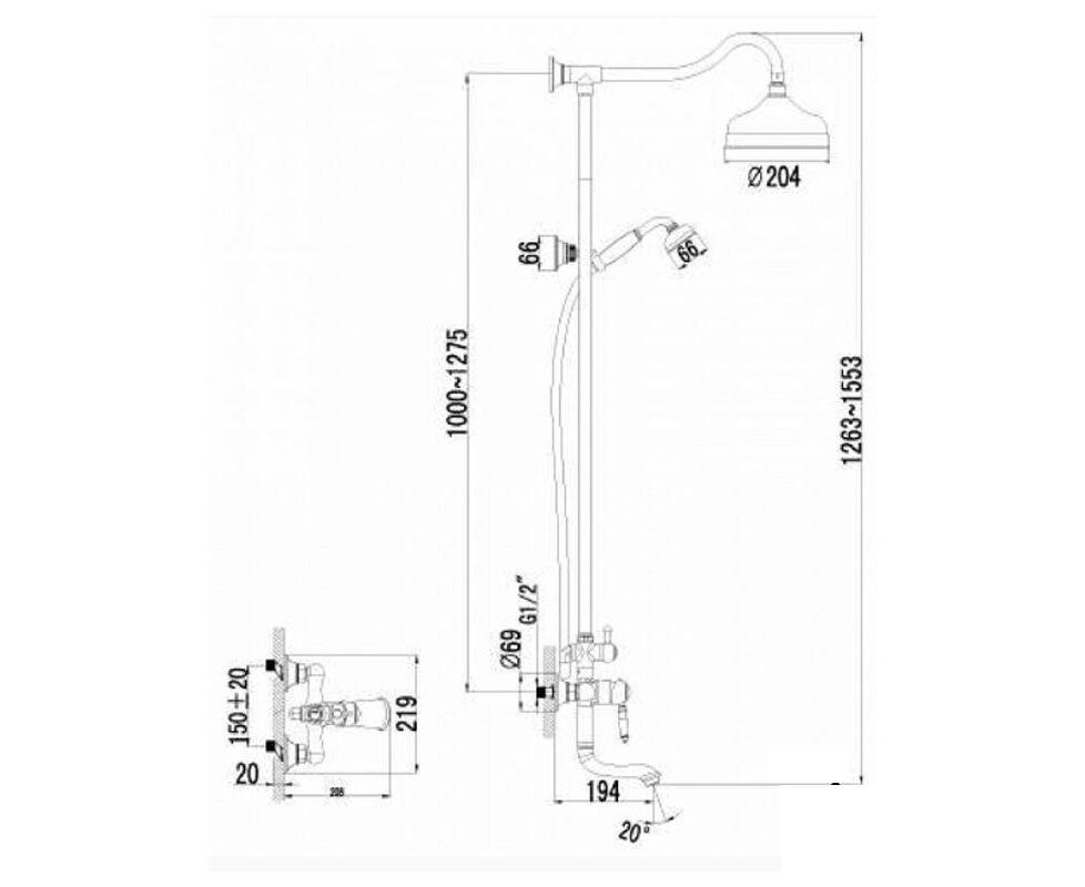 LM4862B Вилла Смеситель для ванны с верхней душевой лейкой Тропический дождь, бронза