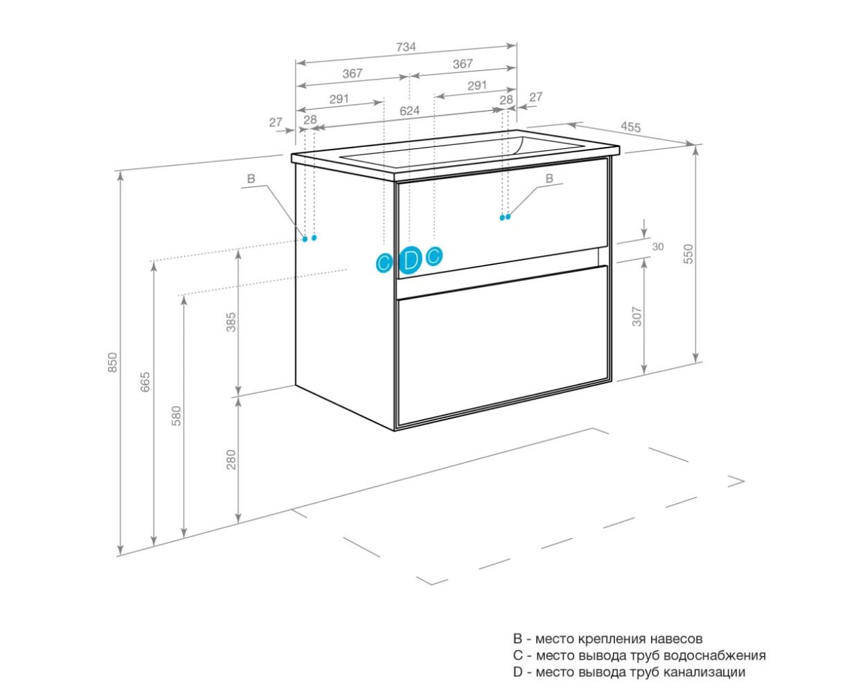 Тумба с раковиной 75 см Aquaton Либерти 1A279501LYC70+1WH501619 Дуб эльвезия