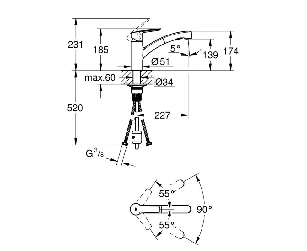 Смеситель для кухни, с выдвижным изливом, черный Grohe QuickFix Start 303072431