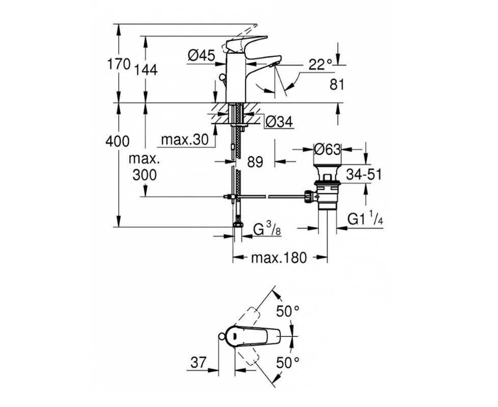 888893 23751000 Смеситель для раковины с донным клапаном Grohe BauFlow