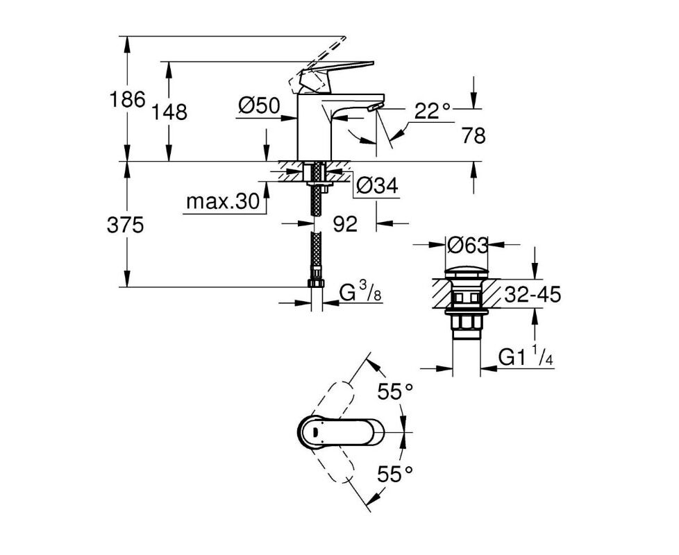 Смеситель для раковины Grohe Eurosmart Cosmopolitan 23925000, хром