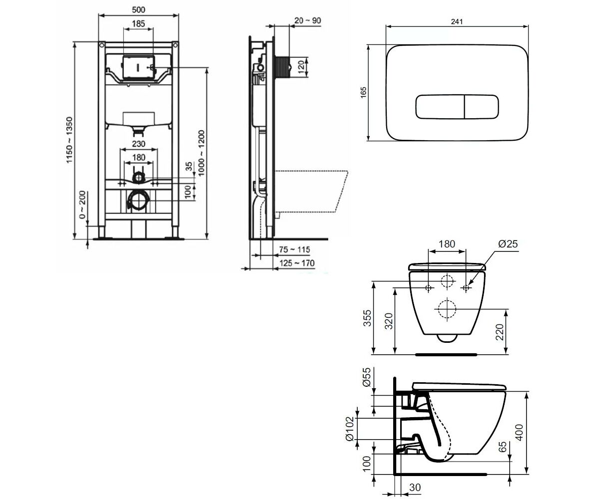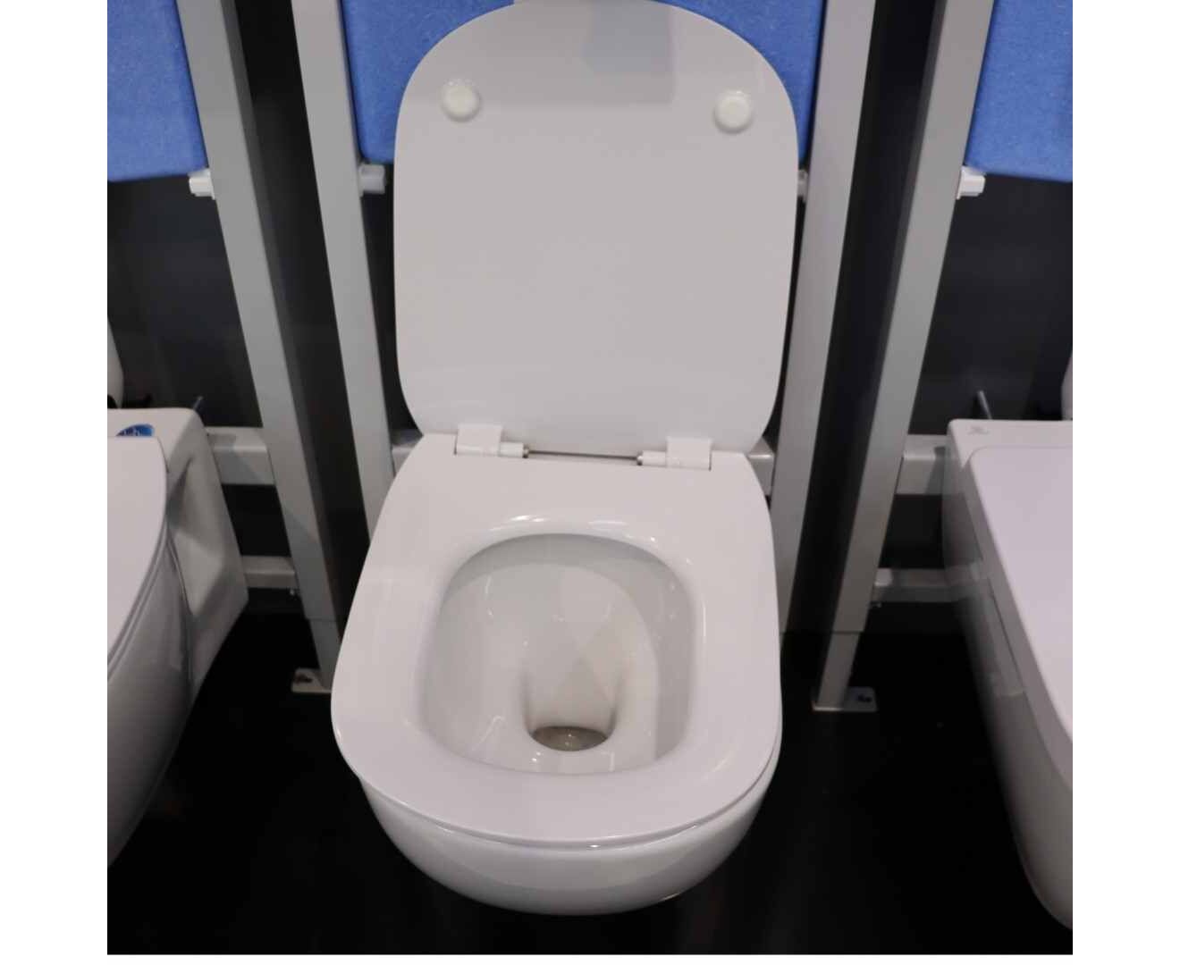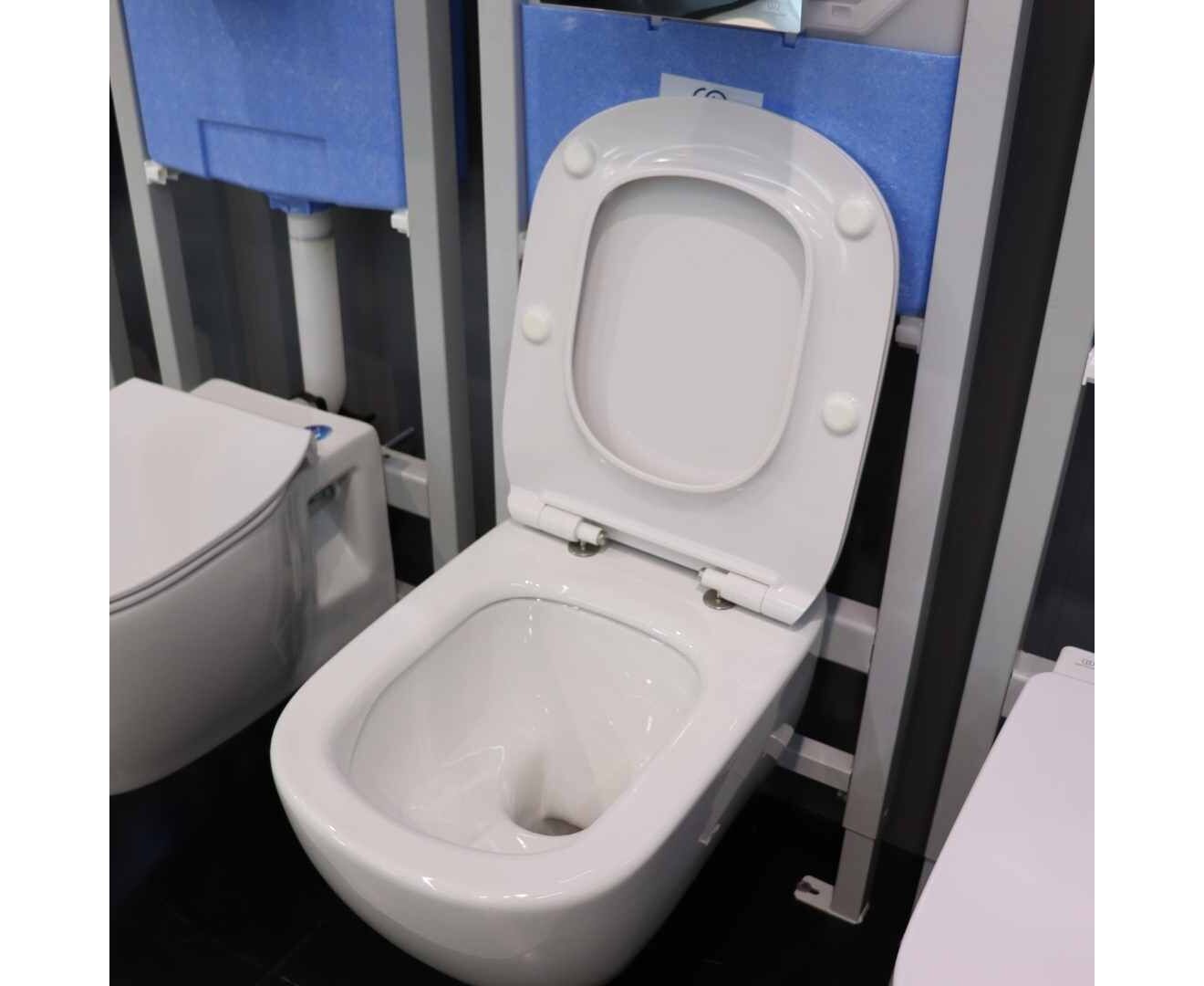 Комплект подвесного унитаза с инсталляцией Ideal Standard TESI состоит из: Безободкового унитаза T007901, тонкой крышки T352701 с микролифтом и инсталляции ProSys с кнопкой смыва R0123AA.