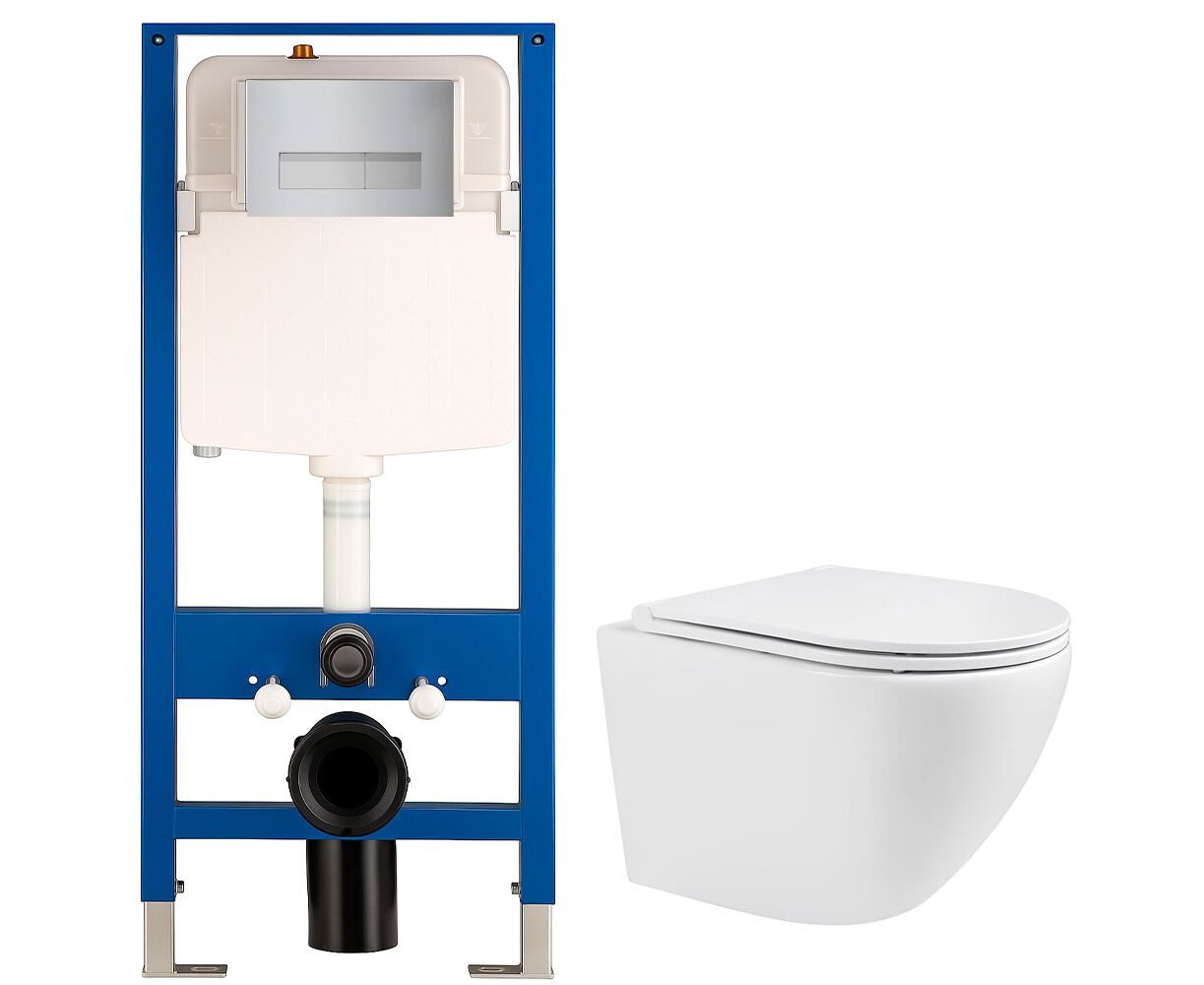 Унитаз с инсталляцией 5в1 Hans HS-046TQ2 H5108-0201, прямоугольная хром клавиша