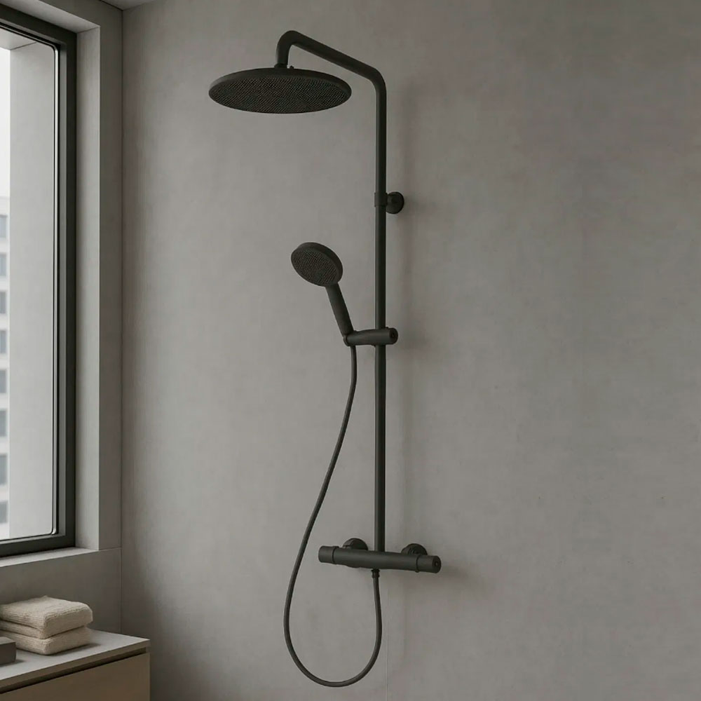 Душевая система hansgrohe Raindance Alive S Puro 300 1jet 24592340 с термостатом Ecostat Element, черный матовый хром – это идеальное решение для стильной и современной ванной комнаты. Эта модель сочетает в себе инновационные технологии, функциональность и элегантный дизайн, который подчеркнёт индивидуальность вашего интерьера.
