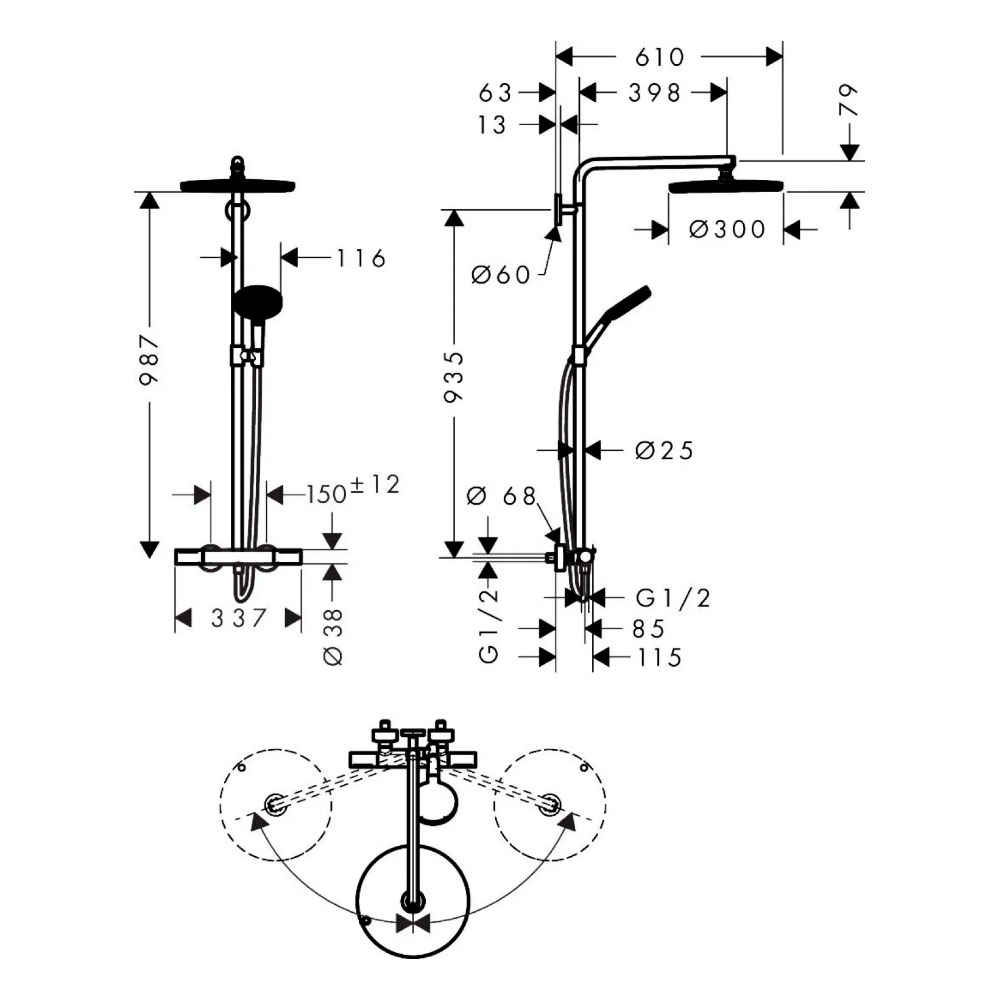 Душевая система hansgrohe Raindance Alive S Puro 300 1jet 24592340, с термостатом Ecostat Element, черный матовый хром