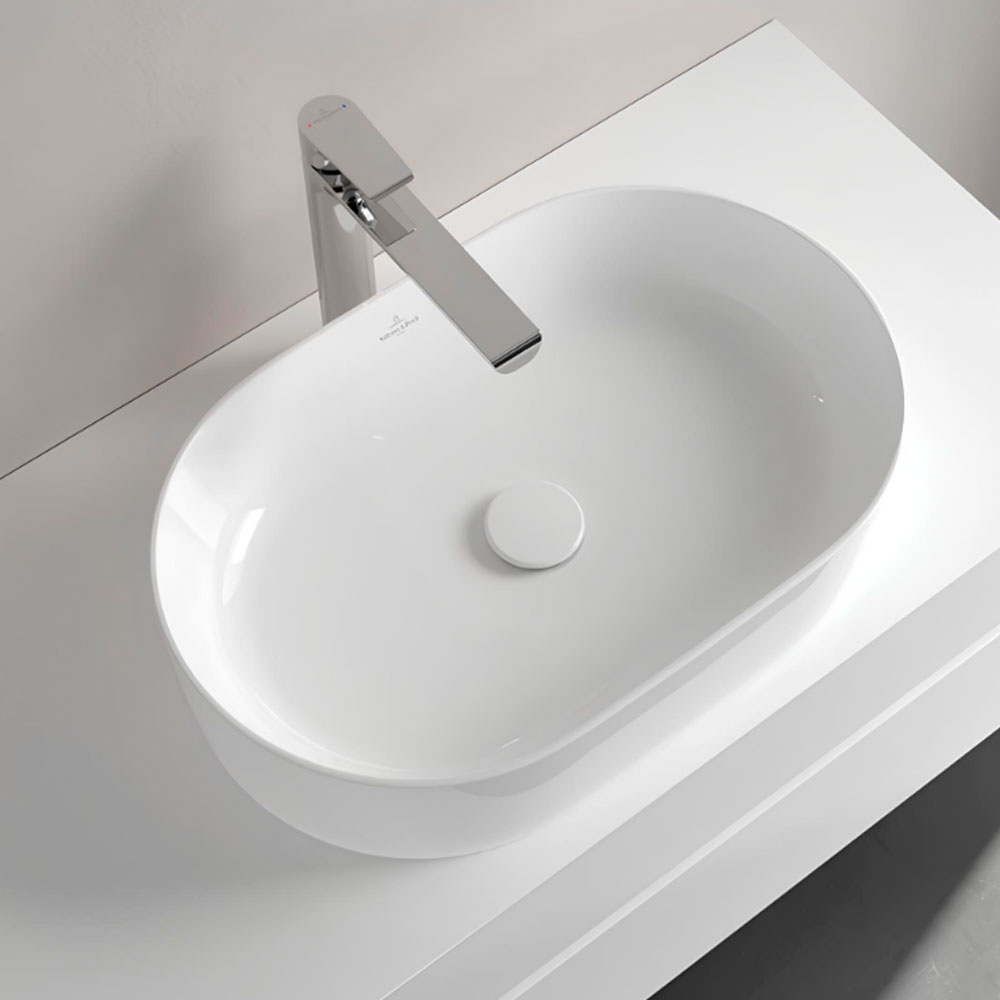 Овальная накладная раковина-чаша от премиального немецкого брендов Villeroy & Boch, модель Collaro 4A195601, размер 56x36 см, цвет альпийский белый.