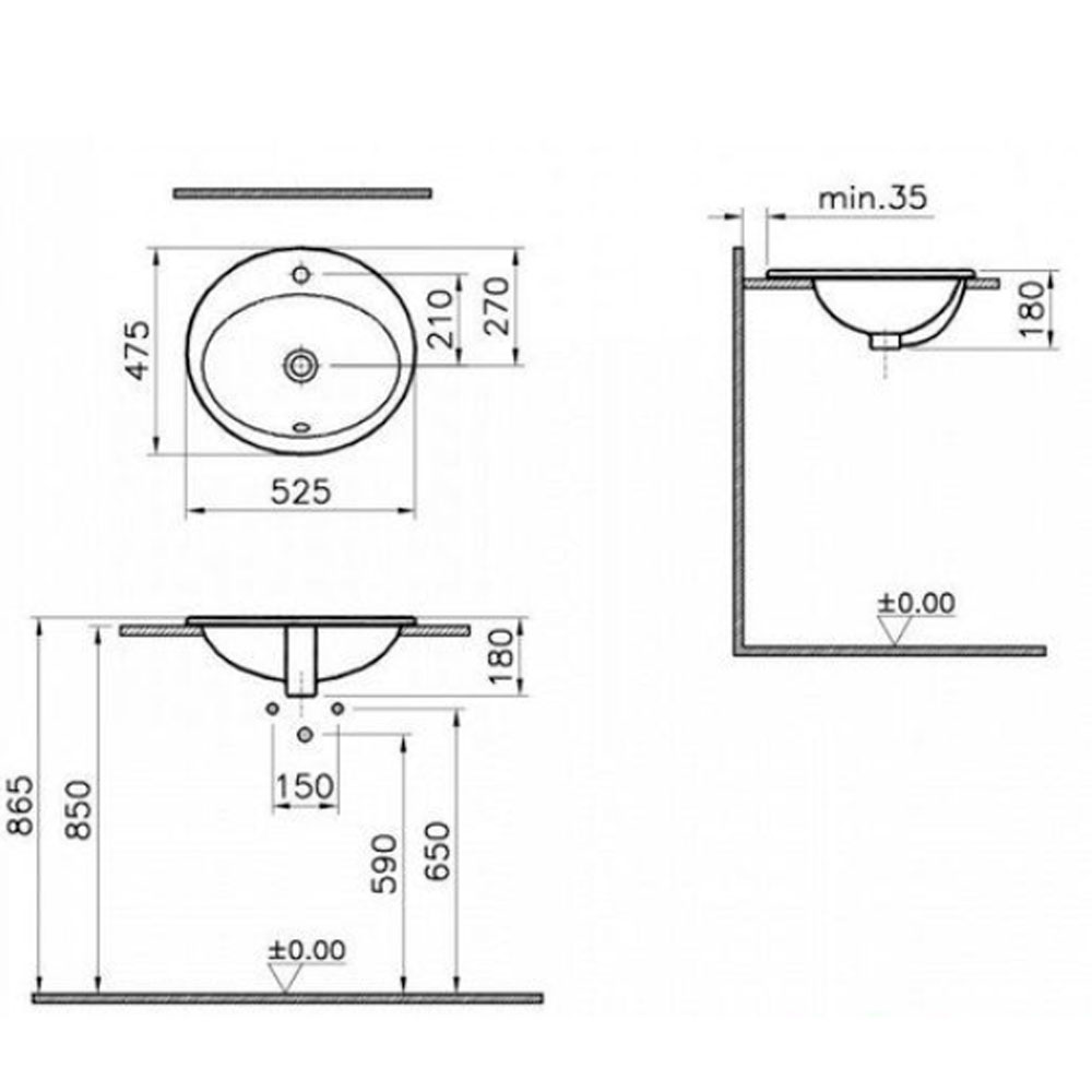 Раковина на столешницу Vitra S20 5468B003-0001 52.5х47.5 см