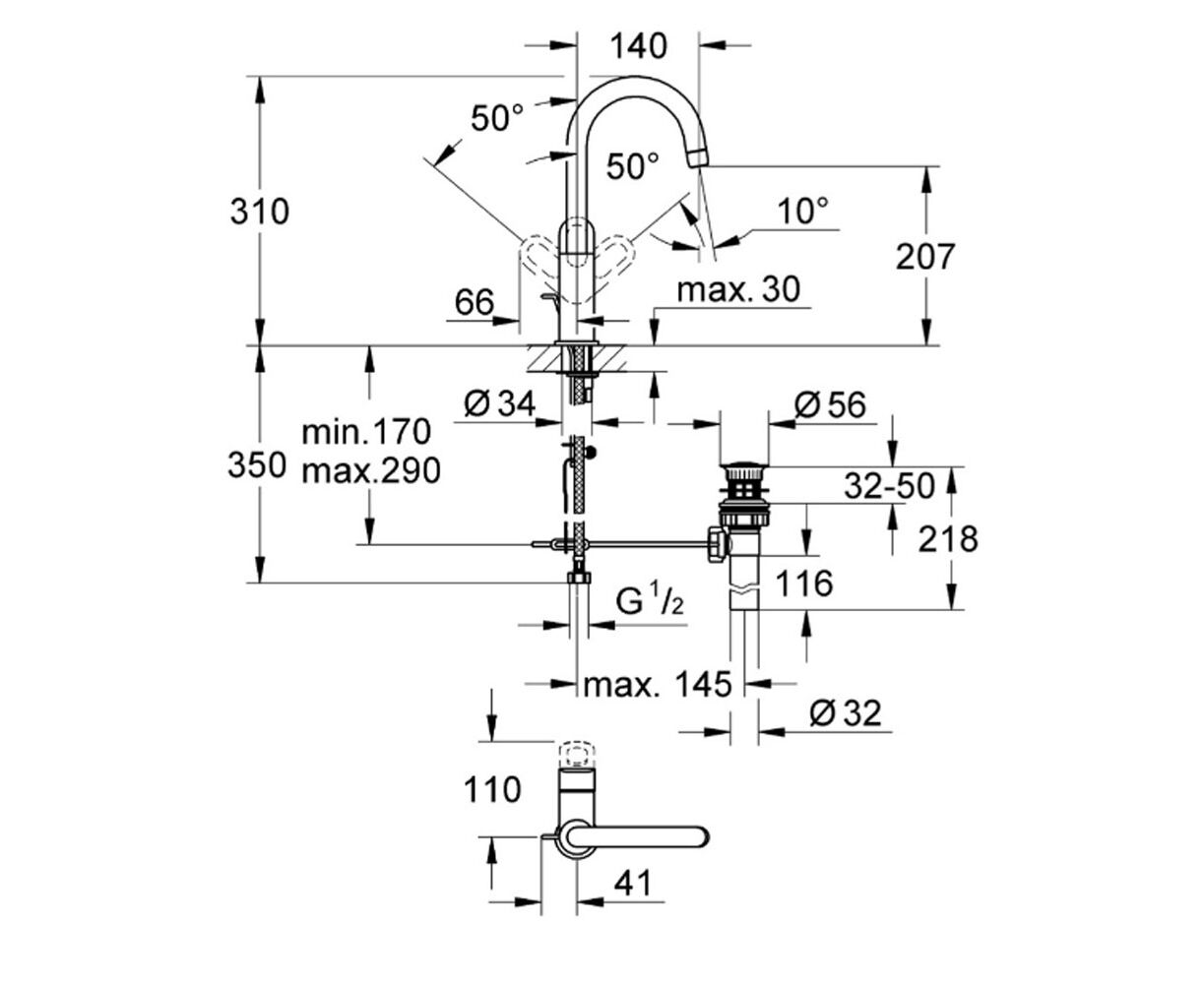 Смеситель для раковины GROHE BauLoop 23091000 с высоким изливом