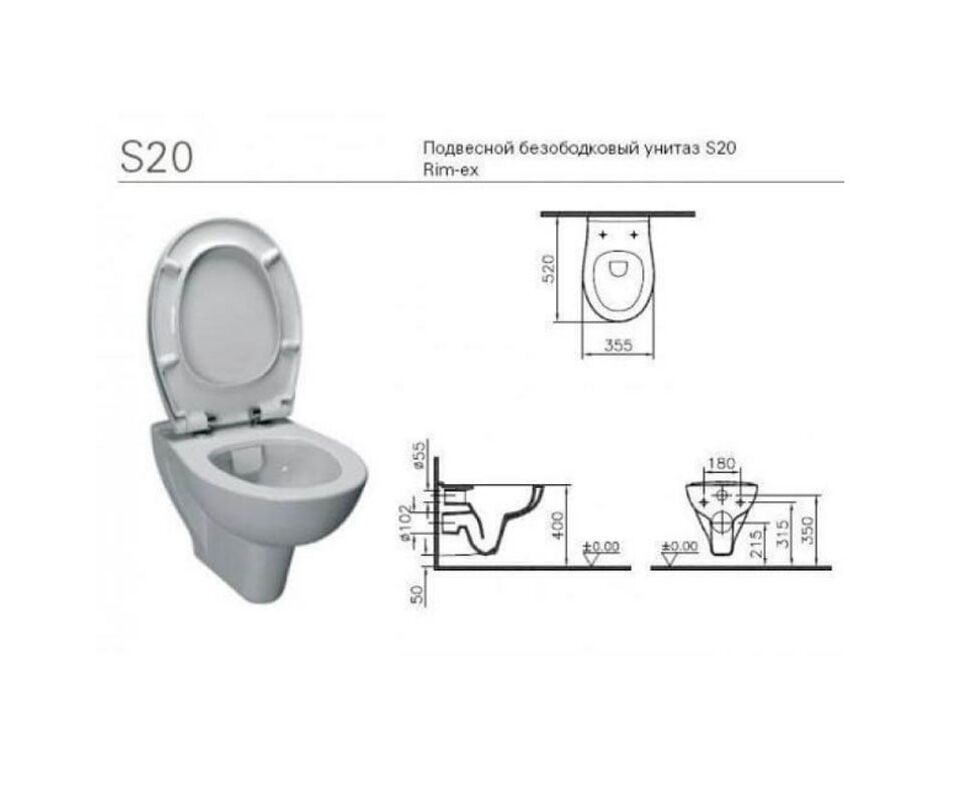 Унитаз подвесной Vitra S20 7741B003-6079 Rim-ex с микролифтом