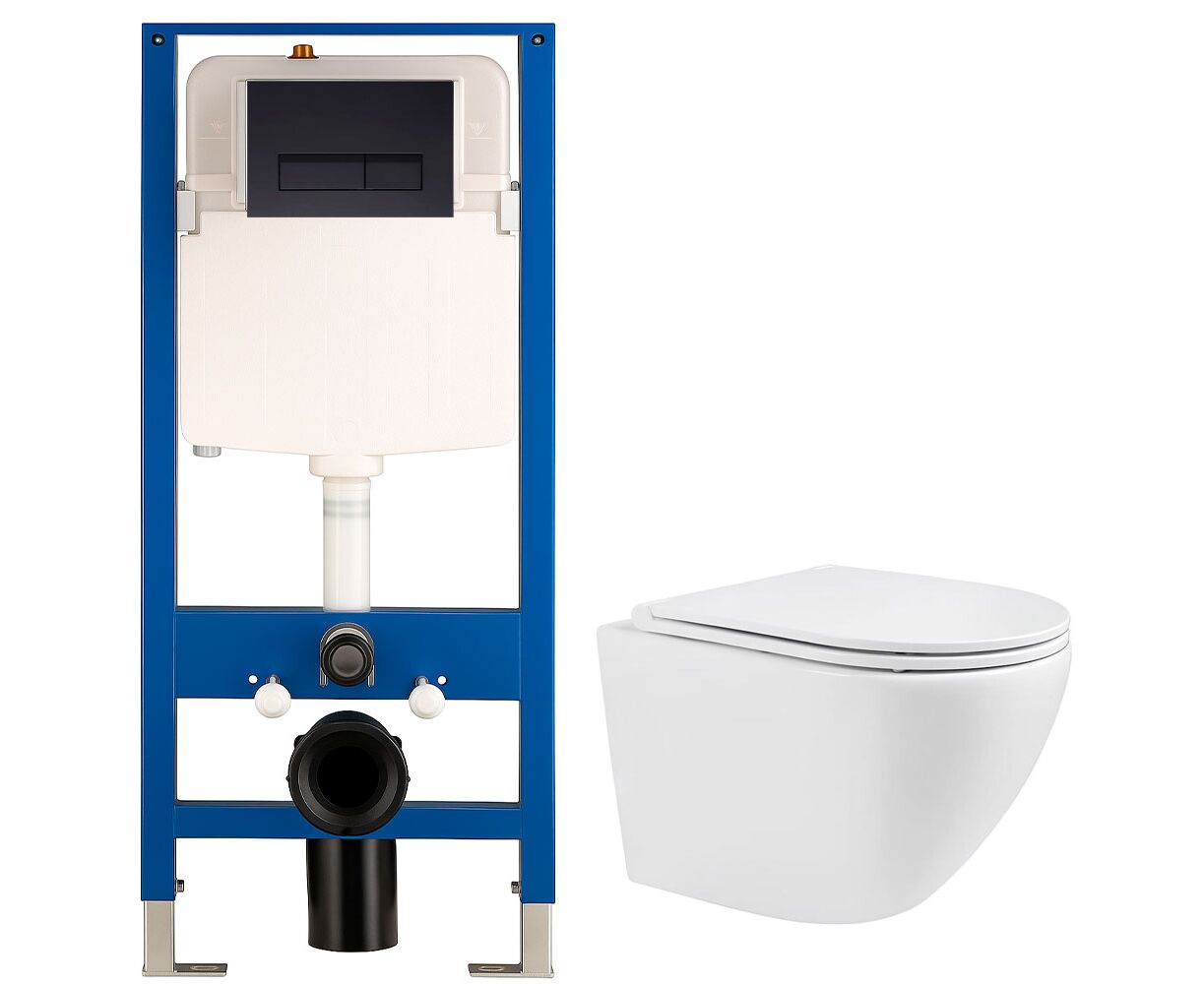 Унитаз с инсталляцией 4в1 Hans HS-046TQ2 H5108-0203, прямоугольная черная клавиша