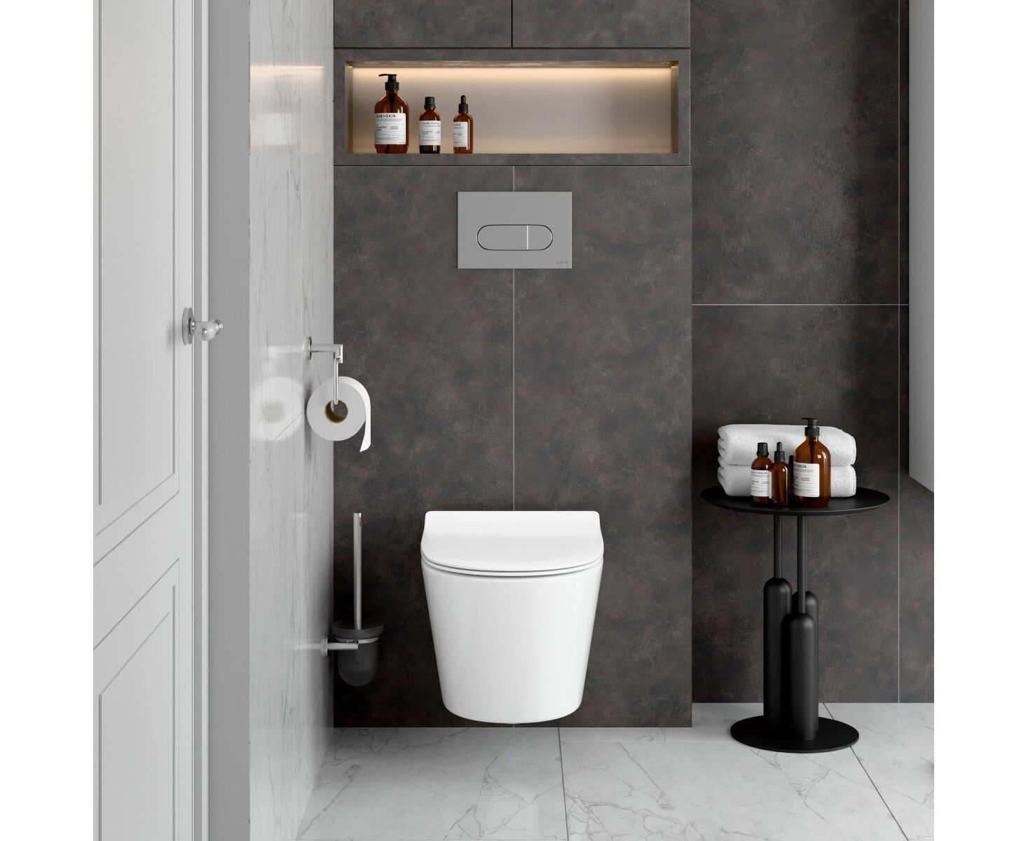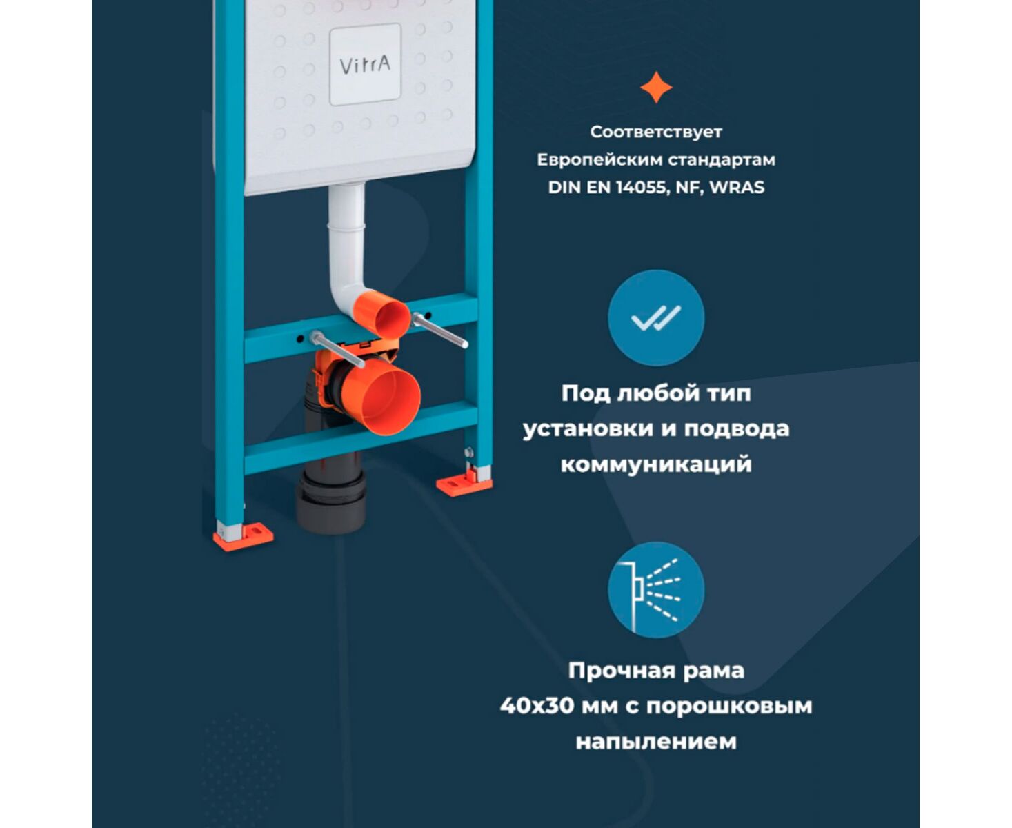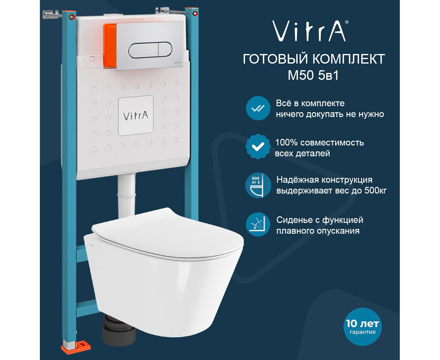 Унитаз с инсталляцией 5в1 VitrA M50 8302B003-6404 безободковый, V-fix Core 800-1873, клавиша хром Root Round 740-2280