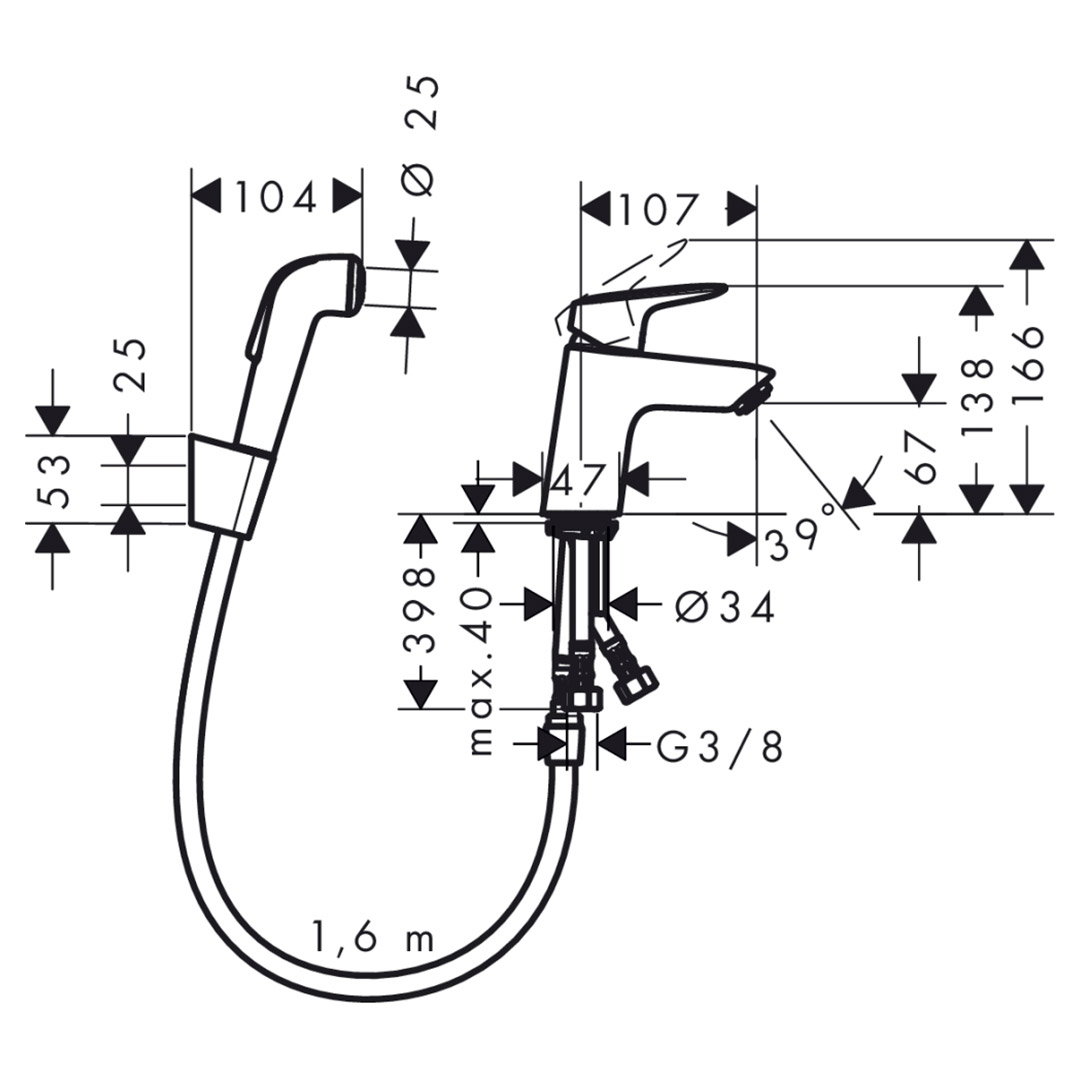 Смеситель для раковины hansgrohe Logis 70 71290000 с гигиеническим душем, хром