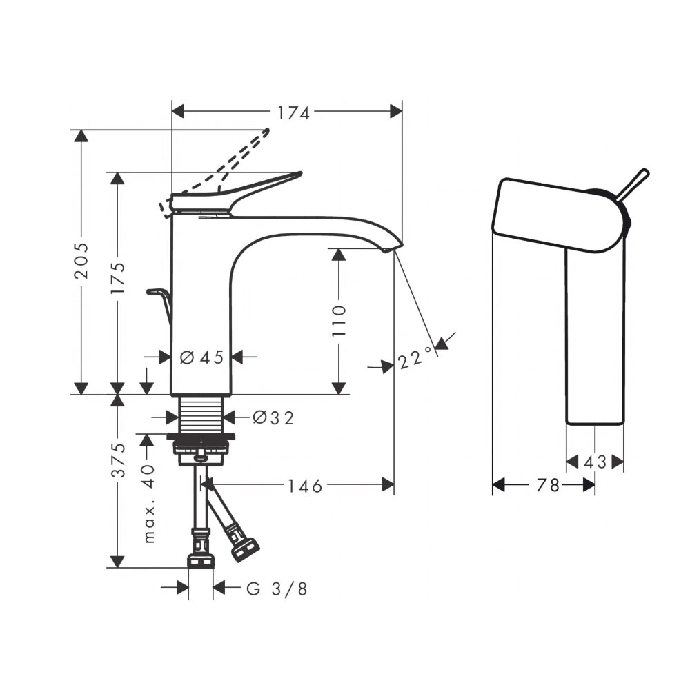 - вариант ручки: рычаговая ручка