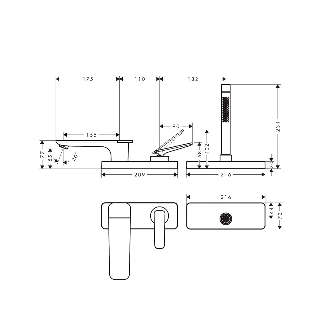 Смеситель врезной на борт ванны AXOR Citterio C 49430000, на 3 отверстия, хром