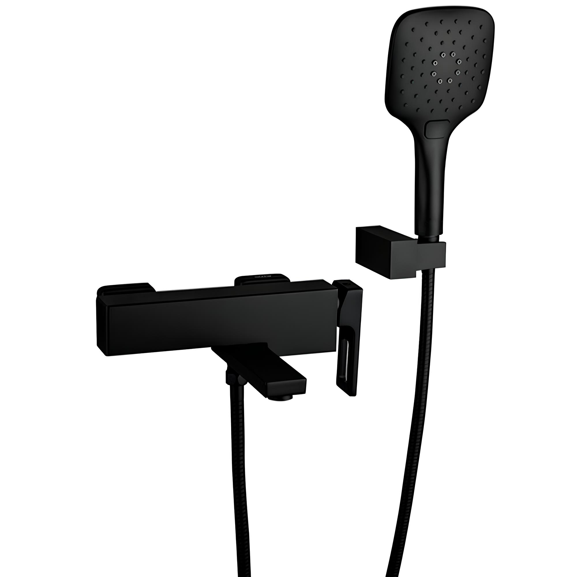 Черный матовый ванно-душевой смеситель в комплекте с душевой лейкой и держателем HANS H11.3003.