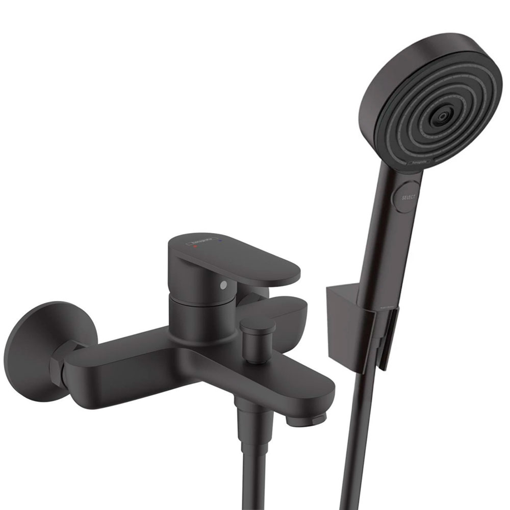 Смеситель для ванны hansgrohe Vernis Blend 71440670 в комплекте с 3-х режимной ручной лейкой hansgrohe Pulsify Select S 24303670 и шлангом 160 см.