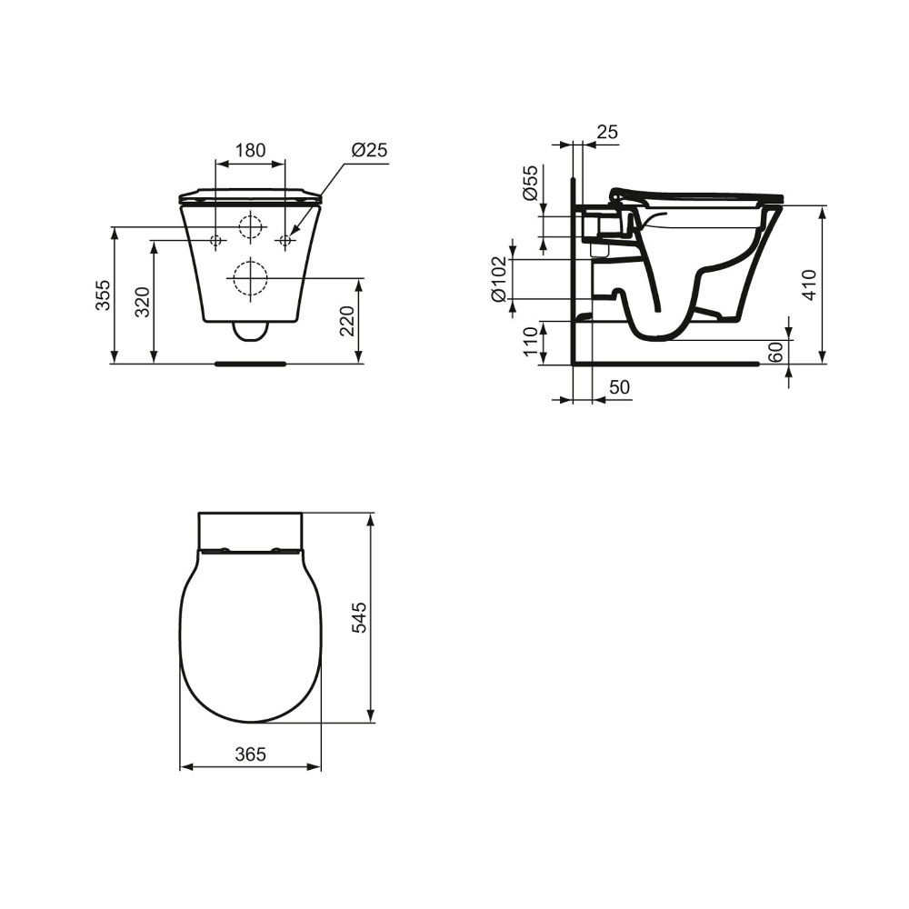 Подвесной унитаз Ideal Standard CONNECT AIR Rimless+ , глубокий смыв, в комплекте сиденье E0368V3 с микролифтом. Цвет Silk Black (Черный шелк).