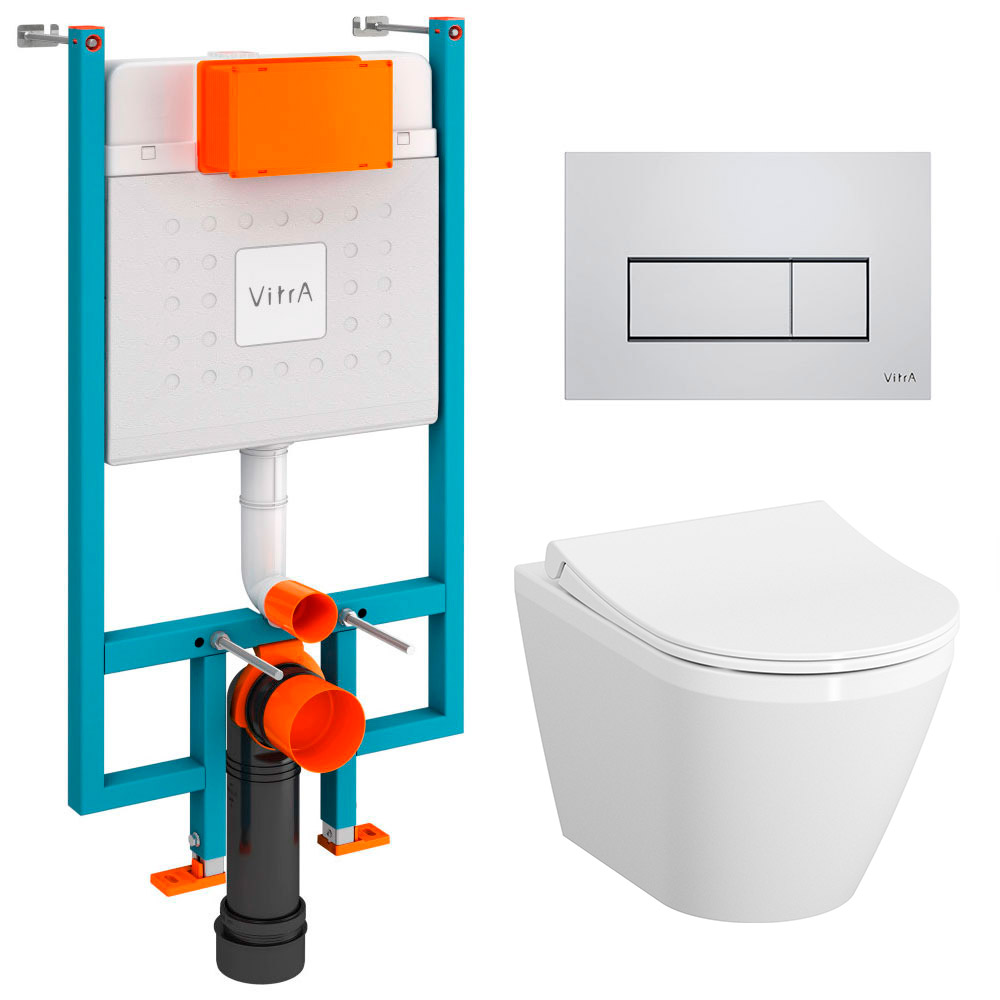 Унитаз с инсталляцией 5в1 VitrA Integra 7040B003-0075 безободковый, V-fix Core 800-1875, клавиша хром Root S 740-2380