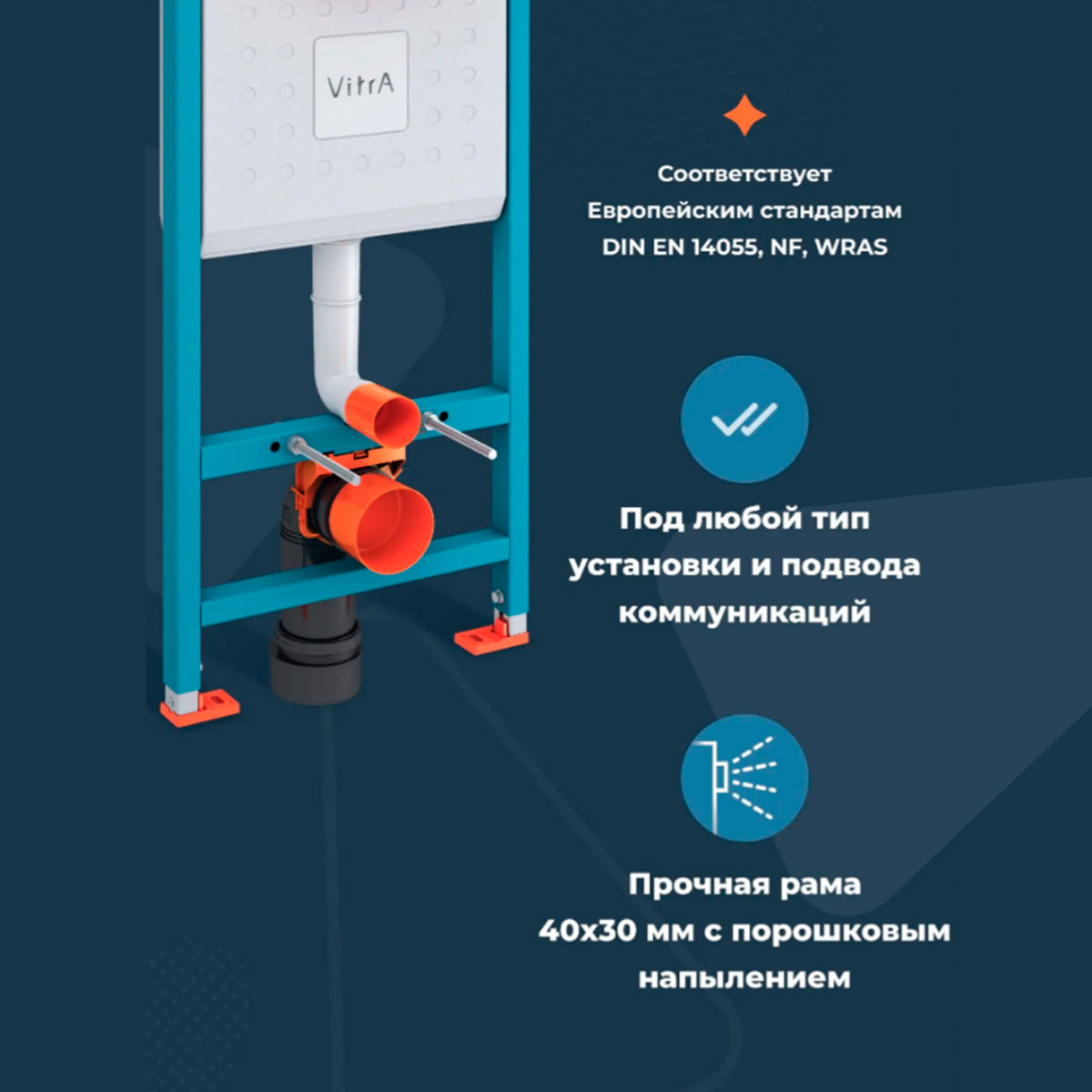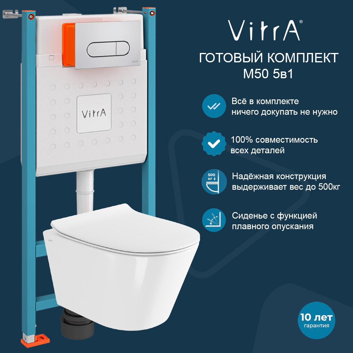 Унитаз с инсталляцией 5в1 VitrA M50 8302B003-6404 безободковый, V-fix Core 800-1873, клавиша хром Root Round 740-2280
